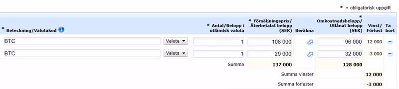 - 0.5 BTC Cost Base acquired on 03/02/2023 = 80,000 NOK for 0.5 BTC