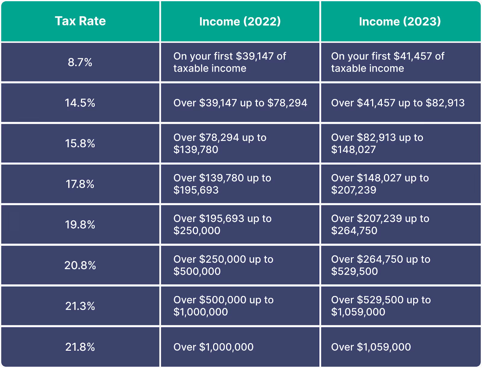 Tranches d'impôt du Québec pour les années 2022 et 2023.