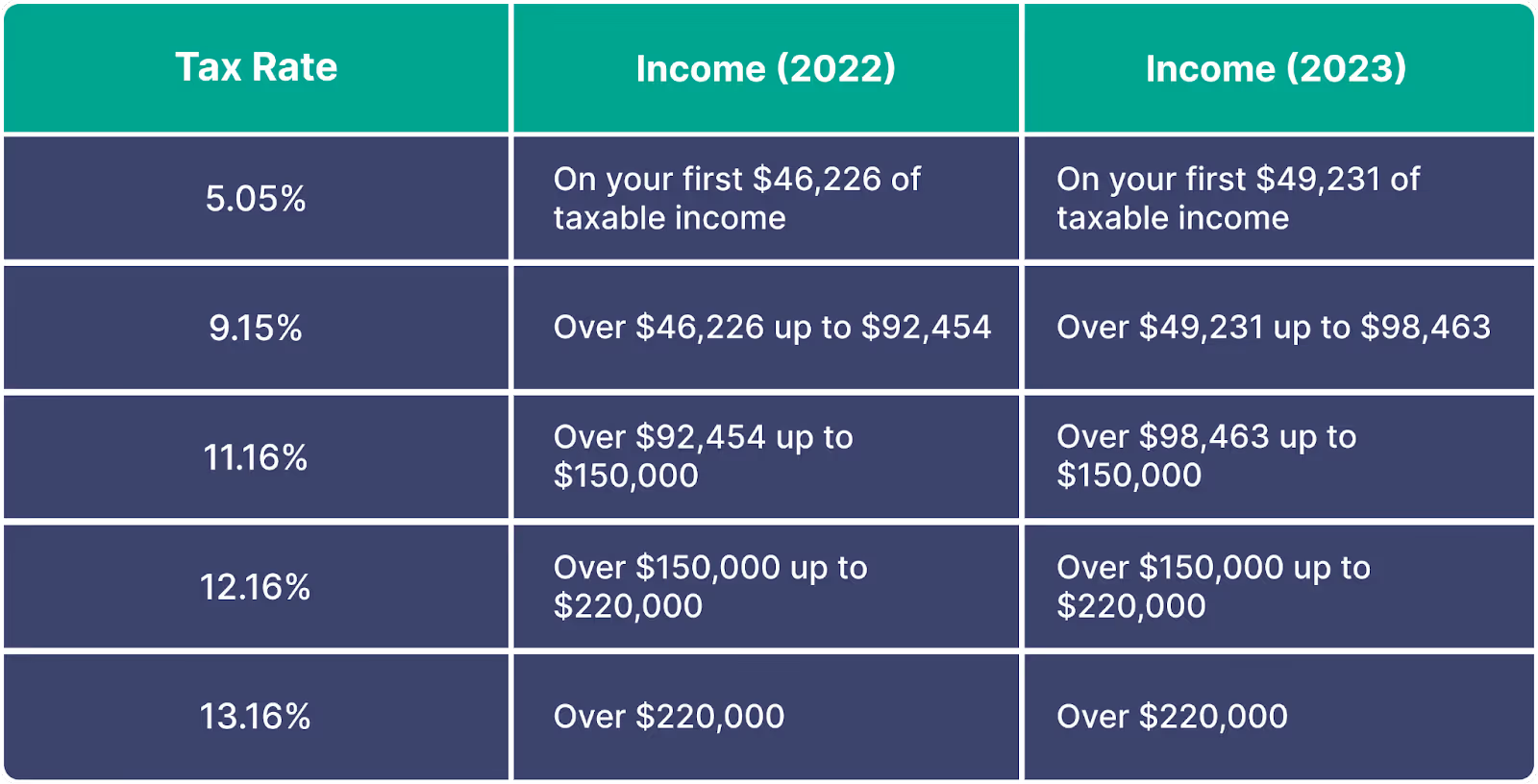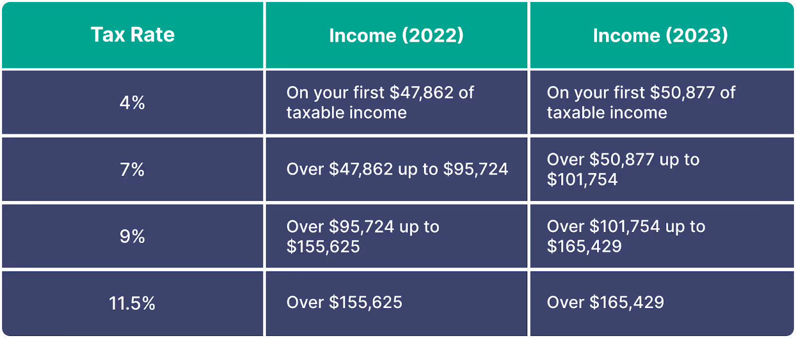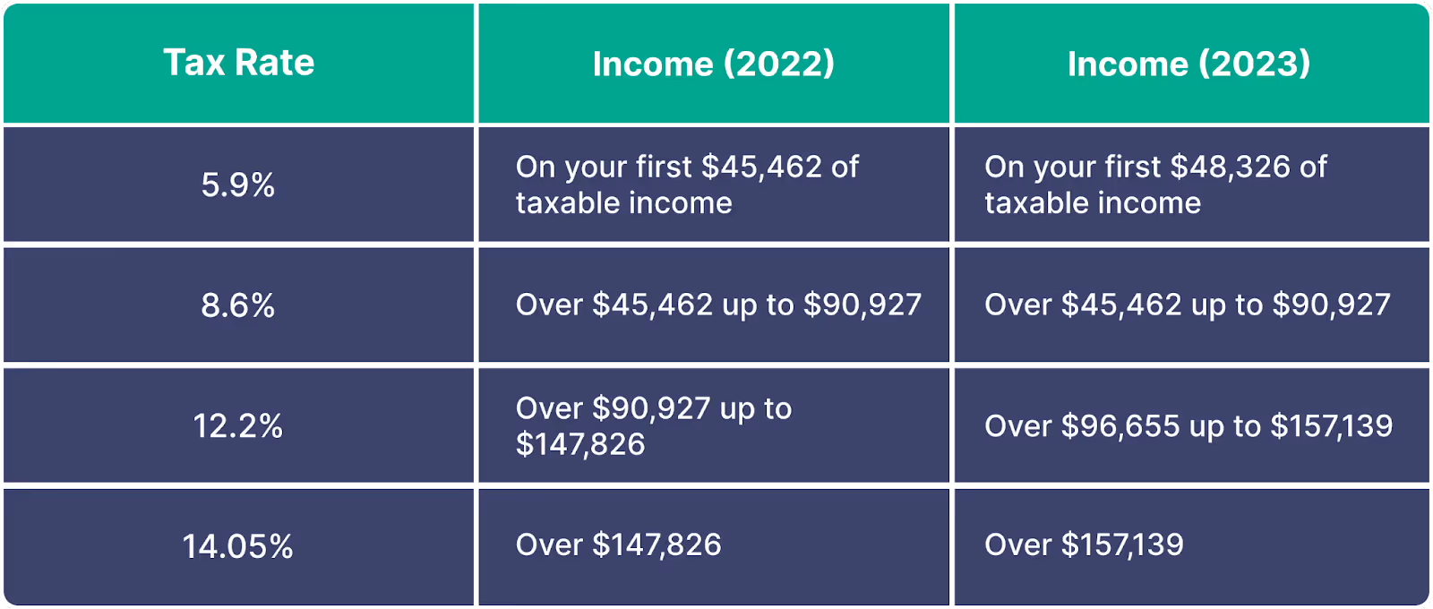 Tranches d'imposition en Nouvelle-Écosse pour 2022 et 2023
