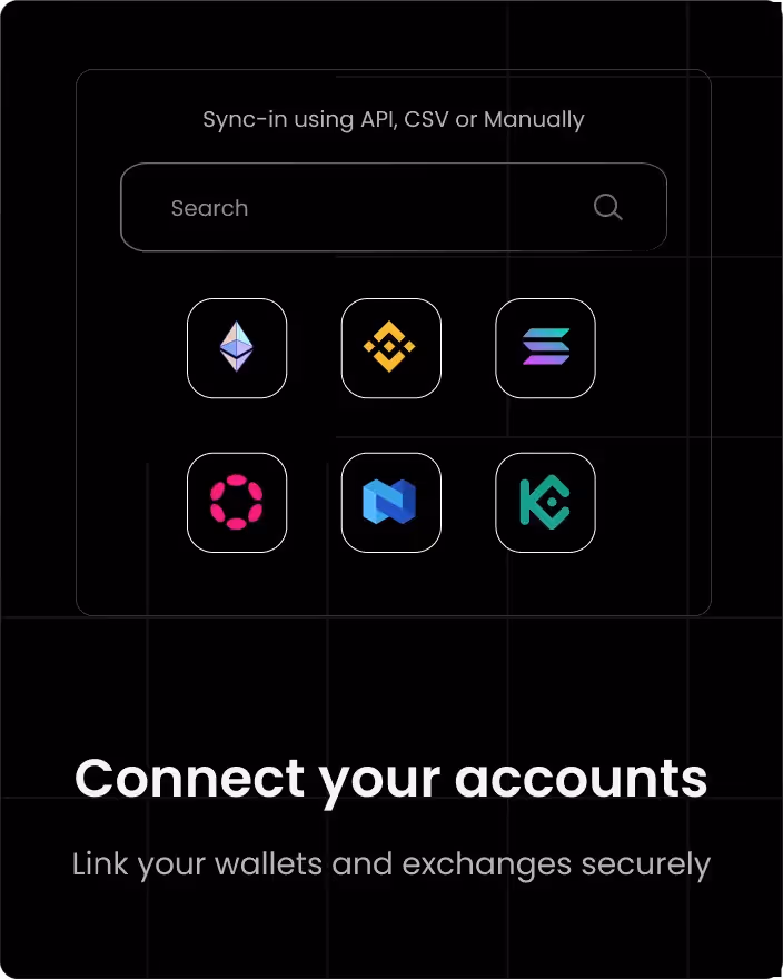 Integrate with 5,000+ wallets & exchanges, including Coinbase, Kraken, & Gemini, for hassle-free transaction imports.