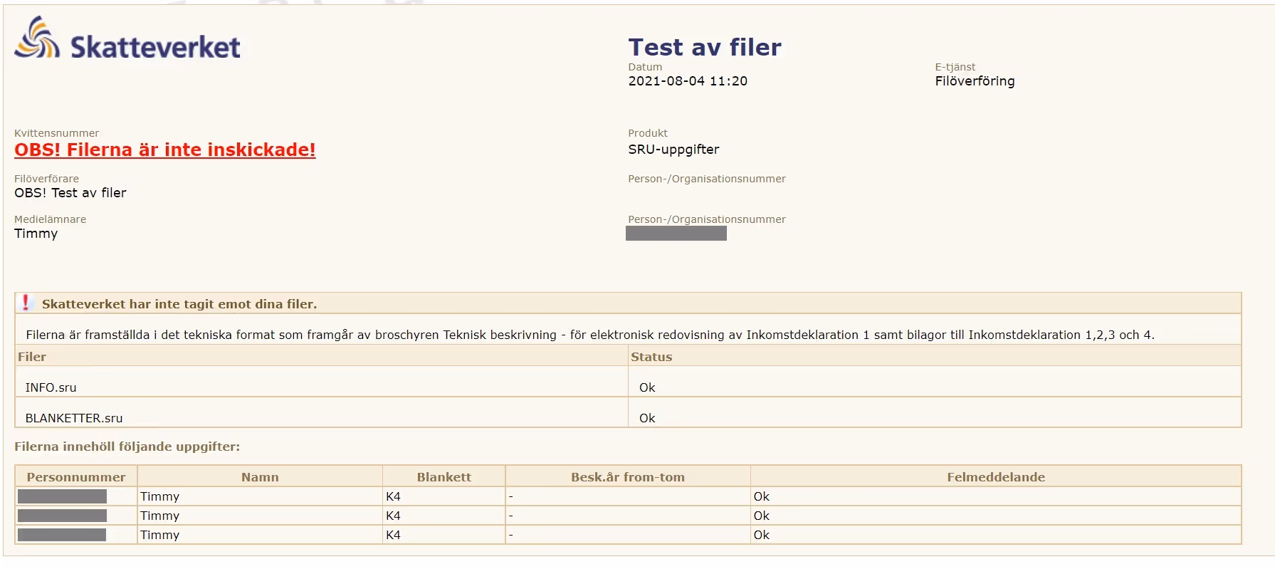 Lägg märke till att i filen BLANKETTER är det mer information, det är den samma informationen som finns i k4-blanketten avsnitt D fast här i SRU-kod.